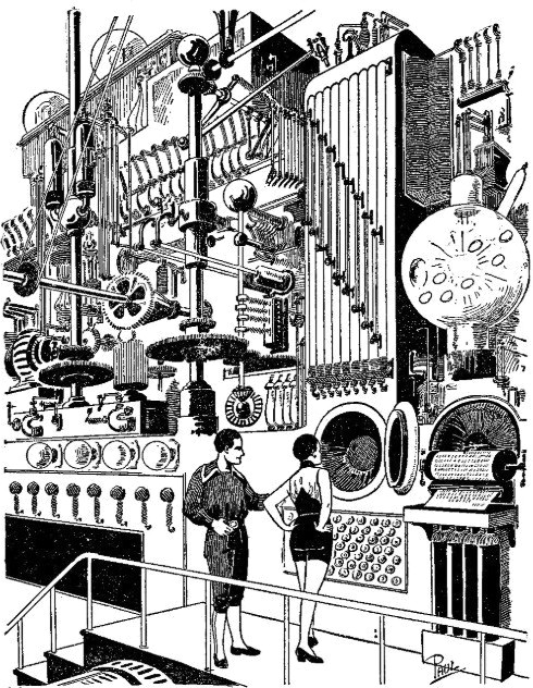 Im Februar 1927 druckten die „Amazing Stories“ The Thought Machine, eine Geschichte über einen Computer. Danach suchten immer wieder denkende Automaten und künstliche Menschen die Zukunftsmagazine heim. Der Österreicher Gerhard Dabringer beschrieb ihre Taten 2022 in seiner Dissertation. Er konzentrierte sich auf die Zeit von 1926 bis 1936, als die Visionen noch wild waren. Seriös wirkten die Roboter-Erzählungen von Isaac Asimov aus der Goldenen Ära und „The Brain“ von Heinrich Hauser aus dem Jahr 1948. Die deutsche Fassung Gigant Hirn liegt inzwischen im Internet.