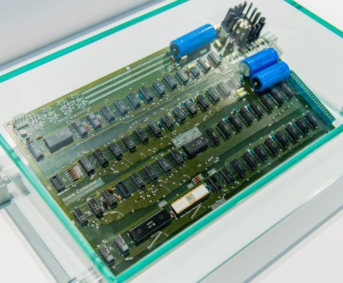 Ein Mikrocomputer sah anders aus, selbst in den 1970er-Jahren, als die Kategorie im Markt erschien. Eigentlich war das Gerät nur eine Grundplatine mit einer Anzahl Chips. Es hieß aber Apple Computer und stammte von der am 1. April 1976 gegründeten Apple Computer Company. Die ersten Exemplare entstanden in einer Garage in Los Altos im Silicon Valley. Der Byte Shop im nahen Mountain View bot sie im Frühjahr 1976 für 666,66 Dollar an.