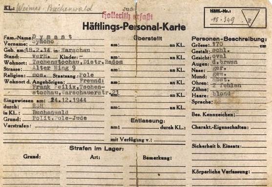Eine Häftlingskarte aus dem KZ Buchenwald mit dem Stempel „Hollerith erfaßt“: er belegt die Erstellung eines Formulars für die Hollerith-Abteilung der SS in Berlin.