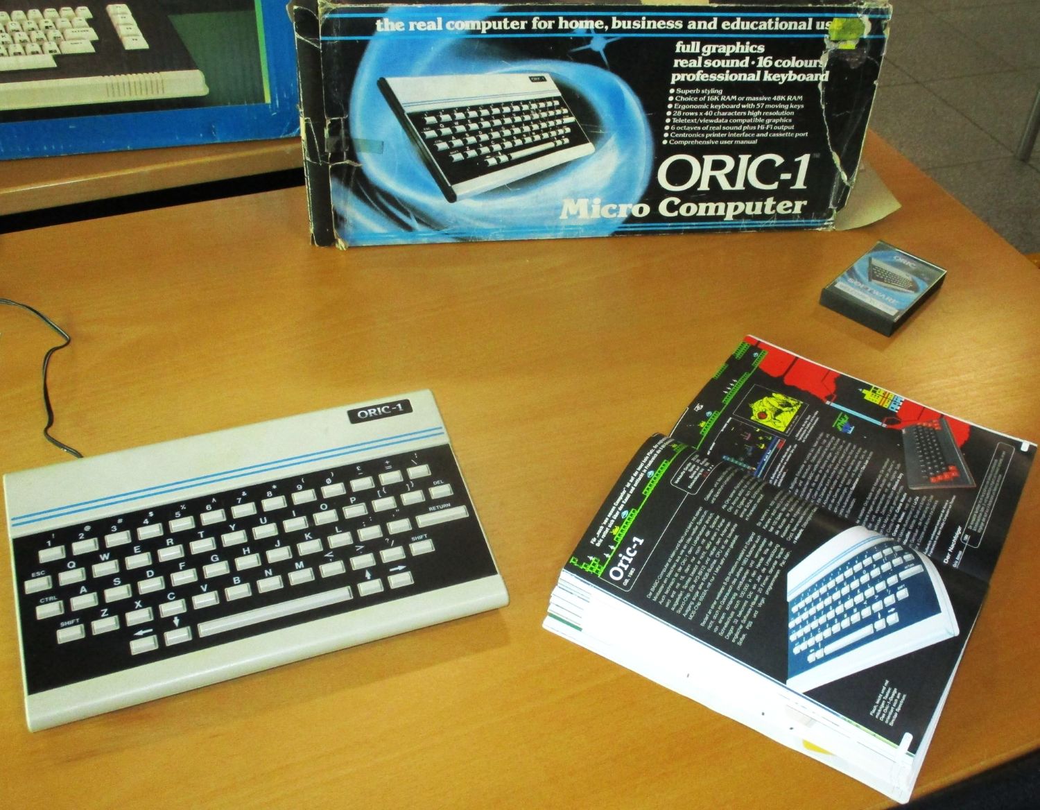 Der erschien im Januar 1983 und hieß Oric-1 – der Name ging aus „micro“ hervor. Vorgestellt wurde der Rechner im Popular Computer Weekly. Wir lesen, dass er 28 mal 17,5 Zentimeter maß und 1,1 Kilo wog. In ihm steckte der Mikroprozessor 6502A von MOS Technology, ein Verwandter des 6502, der die frühen Apple- und Commodore-Modelle antrieb. Der freie Speicherplatz des Oric-1 betrug 16 oder 48 Kilobyte; die erste Version kostete 99,95 Pfund, die zweite 169,95 Pfund. Beide ermöglichten Farbgrafiken. Der Rechner enthielt einen leistungsfähigen Soundchip und einen kleinen Lautsprecher.