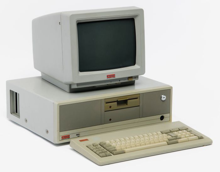 Wie das Blatt schrieb, wurde das Gerät – CPC stand für „Compact PC“ – vom Elektroriesen Matsushita in Japan entwickelt und für den deutschen Markt optimiert. Dort hieß es Nixdorf 8810/25 und kostete in der Grundversion 7.500 DM. Im Inneren steckten ein Intel-8088-Prozessor, der gleiche wie im 1981 vorgestellten IBM PC, und Speicherchips für 256 Kilobyte. Als Betriebssystem diente MS-DOS von Microsoft. Der Rechner hatte einen Neun-Zoll-Monitor und einen integrierten Thermodrucker, außerdem konnte man bis zu zwei Floppy-Laufwerke einfügen. Man sieht ihn oben in unserem Eingangsbild.